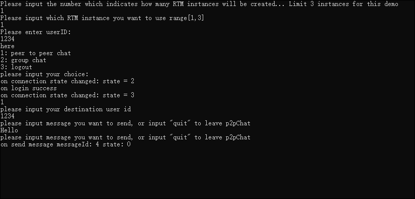 int ret = rtmService_->sendMessageToPeer(peerID.c_str(),