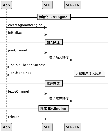 本节介绍如何实现语音通话。视频通话的 API 调用时序见下图:
