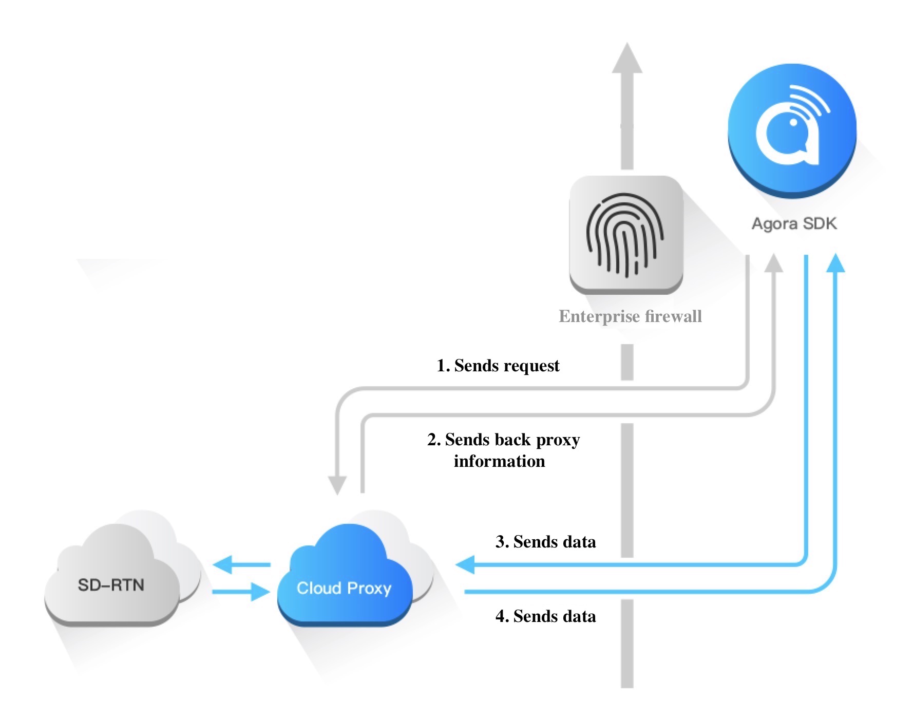 To ensure that enterprise users can connect to Agora's services through a firewall, Agora provides the cloud proxy service.